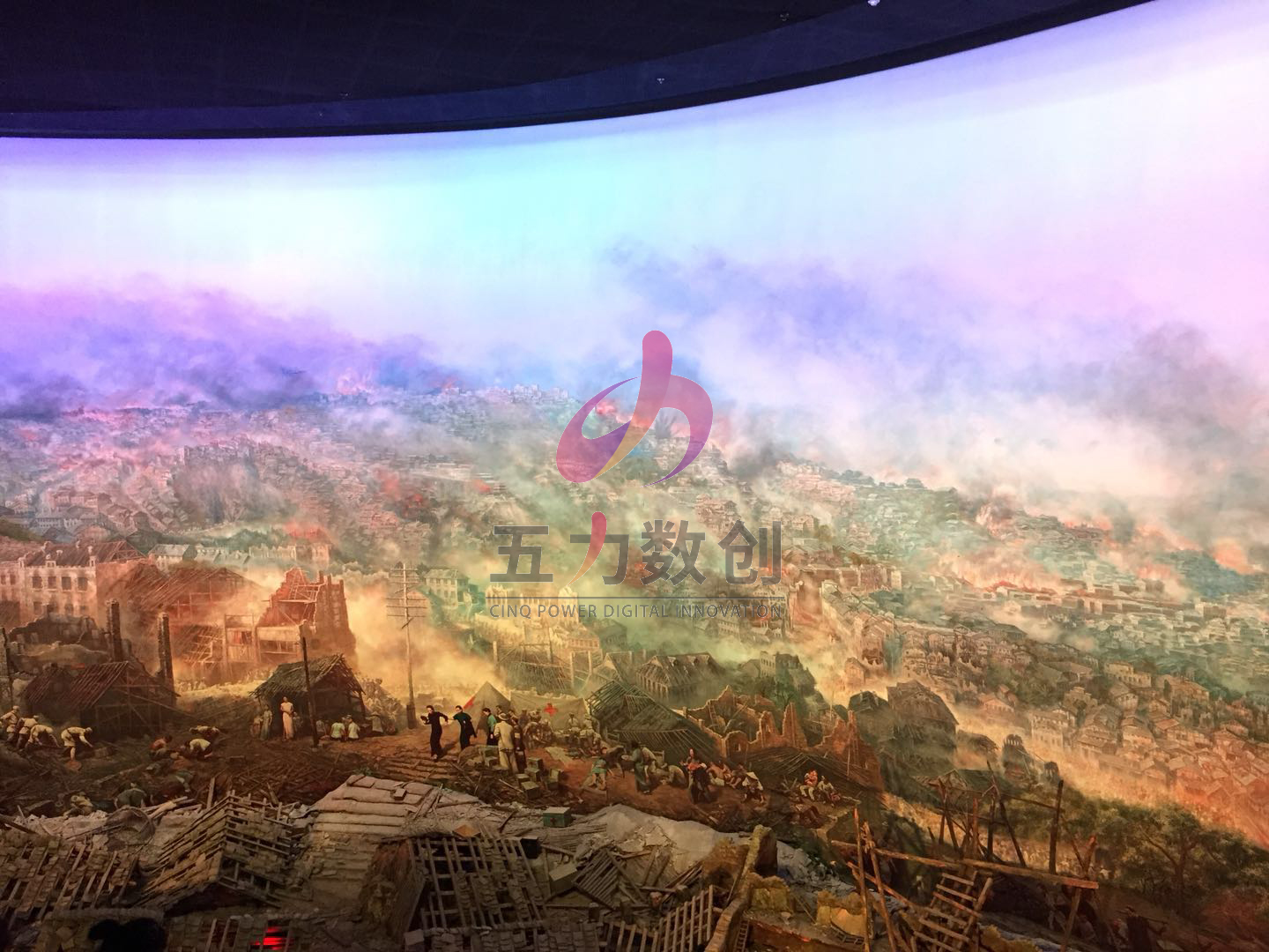 三峽博物館崢嶸歲月廳運用定點投影、半景畫、虛擬現(xiàn)實等高科技技術(shù),契合《重慶大轟炸》巨幅油畫,實現(xiàn)精準(zhǔn)定位融合,再輔以燈光,將《重慶大隧道慘案》場景完美復(fù)原,形成三位一體的獨特展現(xiàn)模式,構(gòu)成宏大的歷史畫卷,真實還原戰(zhàn)時重慶,給參觀者深刻的體驗和印象。